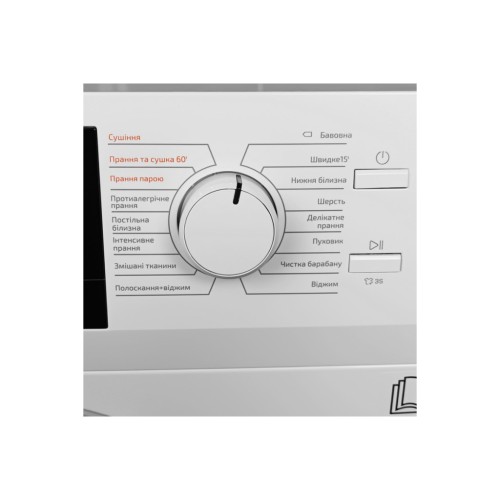 вибір температури; вибір кількості обертів віджимання; кількість полоскань; відстрочка прання; попереднє прання; легке прасування; злив; відміна віджиму; старт/пауза; вибір швидкості віджиму