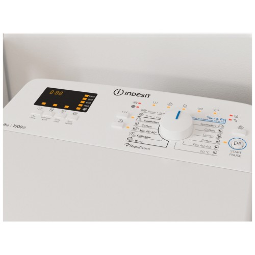Indesit BTW S60400 EU/N оснащена 14 різноманітними програмами прання, серед яких Turn & Go, 20°C, Синтетика 30°, Бавовна 30°. Ці програми розроблені для задоволення всіх ваших потреб у догляді за одягом, від економного прання при низьких температурах до інтенсивних циклів для видалення складних забруднень.
