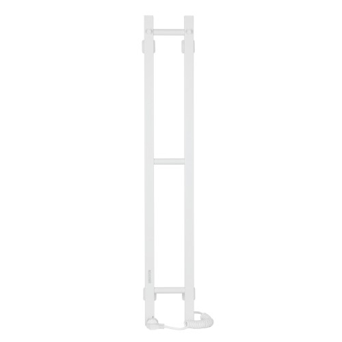 Біла електрична модель типу «драбинка» з двома секціями – стильне рішення для сучасного простору. Виготовлено з фарбованої сталі. Розмір компактний: 100 × 16 × 7,2 см, міжосьова відстань – 13 см. Стаціонарне кріплення гарантує надійність, а розташування шнура праворуч додає зручності. Потужність 76 Вт забезпечує ефективну роботу за максимальної температури до 55 °C, яку регулюють кнопкою. Завдяки захисту на рівні IP44 пристрій є безпечним для використання у вологих приміщеннях. Поверхня залишається охайною й елегантною зі стійким покриттям, яке зберігає білий колір.