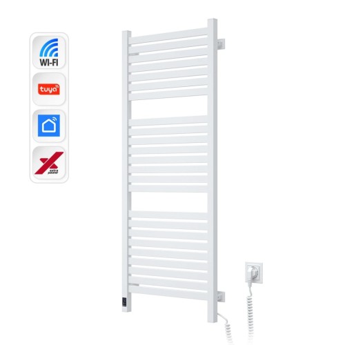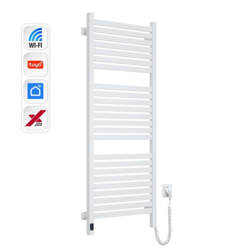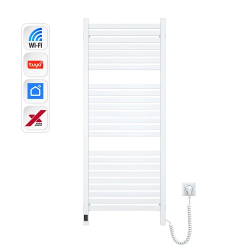 Електрична рушникосушка Navin Авангард X висотою 1200 мм забезпечує ефективне сушіння та рівномірний прогрів завдяки 24 секціям і нагрівальному кабелю. Завдяки сенсорному Wi-Fi керуванню можна дистанційно налаштовувати температуру та робочі режими. Білий колір і сталева конструкція роблять модель надійною та універсальною для різних інтер’єрів. Ступінь захисту IP44 дозволяє безпечно використовувати пристрій у вологих приміщеннях.