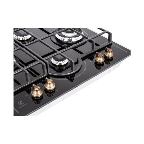 Варочна панель Electrolux також відзначається високоякісним чавунним матеріалом решіток, який гарантує їхню довговічність та стійкість навіть при інтенсивному використанні. Наявність двох знімних решіток робить догляд за поверхнею простим і зручним, а їхня форма забезпечує стабільність для різних типів посуду.