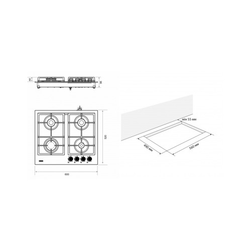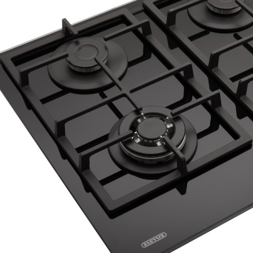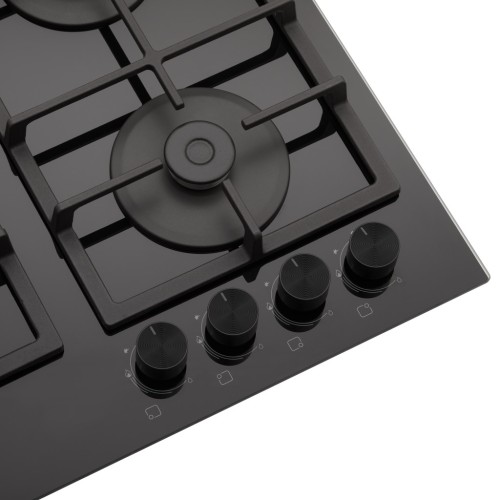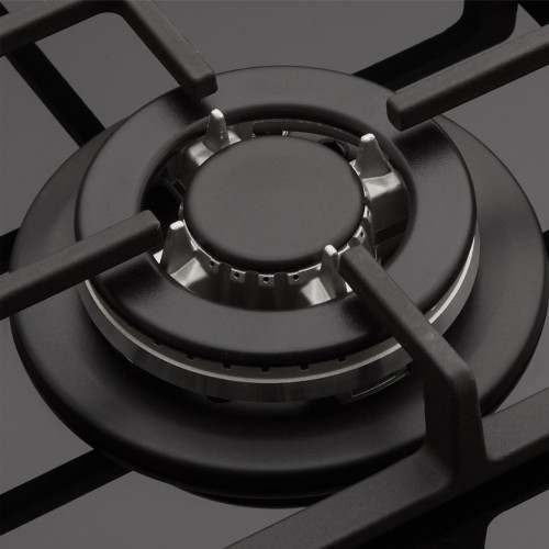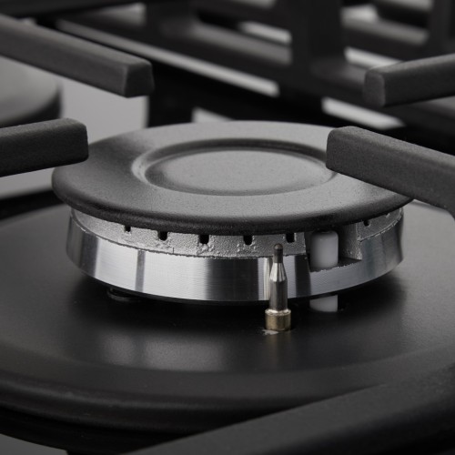 Загартоване скло стає все більш популярним матеріалом для газових варильних поверхонь, адже воно просте в догляді та надзвичайно ефектне. Розміщення пальників дає змогу ефективно використовувати всю робочу поверхню без хвилювань про розташування посуду. Зміщені праворуч поворотні перемикачі розташовані на безпечній відстані від джерела полум'я, щоб ви не обпікалися.
