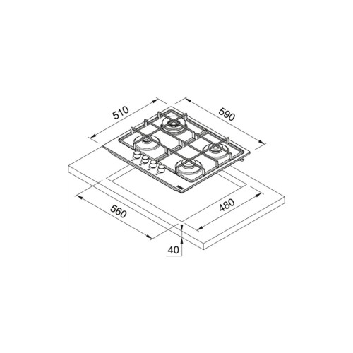 • Особливості конфорок: Варильна поверхня оснащена 4 газовими конфорками різної потужності, що дозволяє одночасно готувати декілька страв.