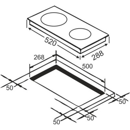 Розміри поверхні складають 52 х 28.8 х 5.5 см, а ніша для вбудовування потребує простір 50 х 26.8 х 5 см. Завдяки цьому, модель серії Доміно чудово підходить для невеликих кухонь, дозволяючи зручно організувати робочу зону та раціонально використовувати наявний простір, зберігши при цьому високу функціональність та якість.