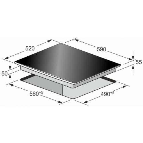 Інтегрований дисплей надає можливість чітко контролювати процес приготування, налаштовуючи потрібні параметри на високоточному екрані. Розміри ніші для вбудовування (56.5 х 49.7 х 5.5 см) дозволяють легко інтегрувати варочну поверхню у будь-яку кухню, забезпечуючи гармонійне поєднання з іншою технікою.