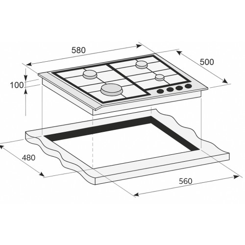 Габаритні розміри поверхні складуть 58 х 50 х 10 см, а стандартні розміри для вбудовування — 56 х 48 см — дозволяють легко і гармонійно інтегрувати цю варочну плиту у будь-який кухонний гарнітур. Чіткий і зрозумілий механічний тип управління, розташований внизу праворуч, робить експлуатацію надзвичайно простою навіть для недосвідчених користувачів.