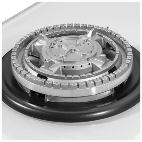 Нова стильна 4х конфорочна варильна поверхня PFG 604 Т виконана з практичного загартованого скла, оснащена стійкими до високих температур чавунними решітками та має приємні на дотик круглі ручки управління. Має надшвидку турбоконфорку з трьома рядами полум’я. Зручність та безпеку гарантують електропідпал, газ-контроль та італійські газові крани Sabaf.
