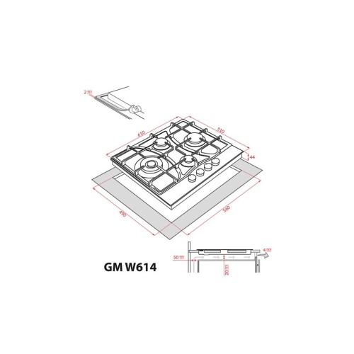 • Комбінація прямих ліній і обтічних елементів у дизайні газової варильної поверхні Weilor дає змогу пристрою доповнити будь-який сучасний інтер'єр.
