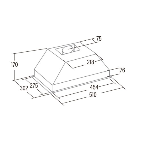 Повновбудована витяжка, відведення/рециркуляція повітря, продуктивність 760 м3/год, механічне керування, 2 швидкості