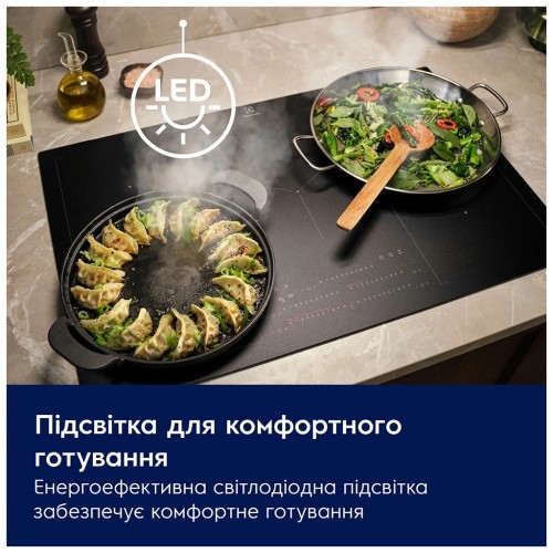 Pure Illumination забезпечує яскраве довговічне освітлення під час приготування їжі. Енергоефективні світлодіодні лампи висвітлюють всю варильну поверхню, дозволяючи легко побачити кожну деталь під час приготування страв.