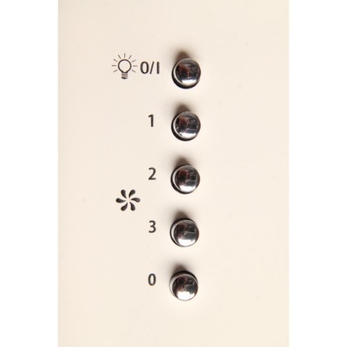 Механічне управління (кнопка), галогенове освітлення, алюмінієвий жировий фільтр, опціонально, може бути укомплектована вугільним фільтром.