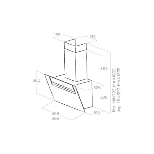 Сучасна похила витяжка з пристінним типом монтажу. Високопродуктивний пристрій, за одну годину може видалити 900 куб.м забрудненого повітря, позбавивши кухню гару, кіптяви, пари, продуктів згоряння й неприємних запахів, які з'являються в процесі приготування їжі.