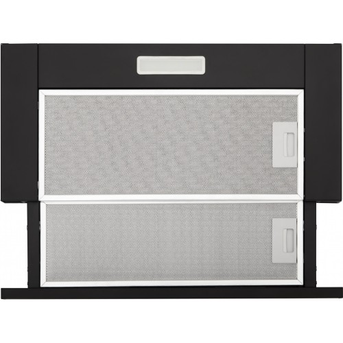 Вбудована телескопічна витяжка, режим роботи відведення, продуктивність 650 куб.м/год, 2 швидкості, приховане кнопкове управління, світлодіодна лампа, алюмінієвий жировий фільтр, ширина 59.6 см.