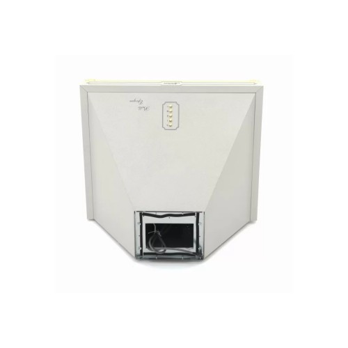 Корпус пристрою виконаний з високоякісного металу та пофарбований в елегантний білий колір, що надає витяжці сучасного та стильного вигляду. Галогенне освітлення потужністю 2x20 Вт забезпечує яскраве та рівномірне освітлення робочої зони, що особливо важливо при приготуванні їжі у вечірній час.
