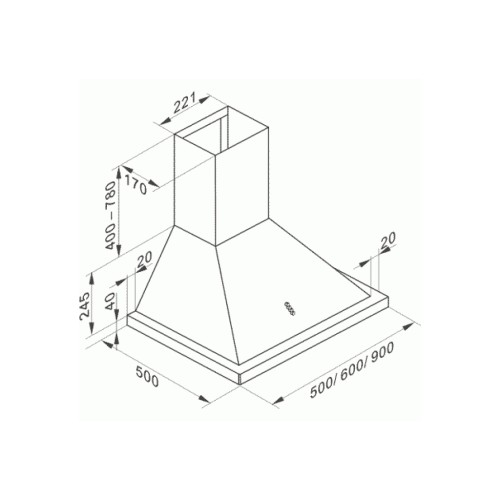 Ширина витяжки складає 90 см, а висота – 106,5 см, що дозволяє легко інтегрувати її в кухонний інтер'єр. Алюмінієвий фільтр ефективно затримує жир та інші забруднення, забезпечуючи тривалий термін служби пристрою та легкість у догляді.