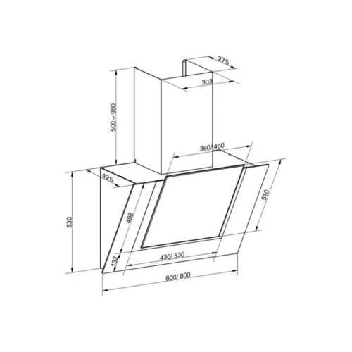 Ширина витяжки складає 80 см, а висота - 131 см, що дозволяє їй ідеально вписатися в кухонний простір.