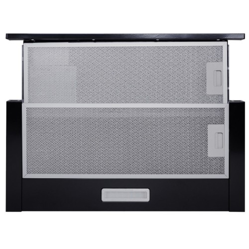 Телескопічна витяжка, потужність 700 м3/год., ширина – 495 мм. Колір витяжки/висувної панелі – чорний. Матеріал витяжки/витяжної панелі – метал. Управління механічне. 2 швидкості. 1 двигун. Освітлення 1х2 Вт LED. Алюмінієвий фільтр. Відведення/Рециркуляція. Рівень шуму 52-61 Дб