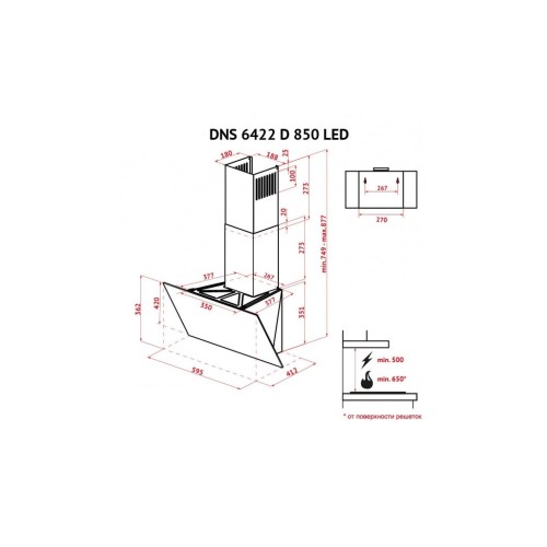 Сучасні та високотехнологічні витяжки DNS 6422 D 850 LED стали одними з найефективніших приладів для очищення повітря кухонного приміщення. При цьому ширина витяжки Perfelli DNS 6422 D 850 LED становить всього 60 см, що робить її ідеальним варіантом для кухні будь-яких габаритів.