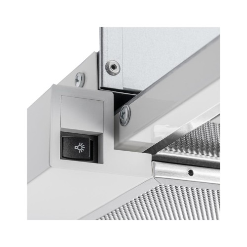 Непомітний помічник на кухні сподобається любителям мінімалізму. Витяжка повністю вбудовується у шафу та ідеально підходить для невеликих кухонь. Продуктивність 400 м3/год - цього достатньо для кухні 8-9 м2. LED освітлення забезпечує комфортне приготування страв навіть у темну пору доби. Ергономічне механічне керування дозволяє легко змінювати швидкості. Витяжка може працювати у двох режимах на вибір - відведення повітря або рециркуляція.